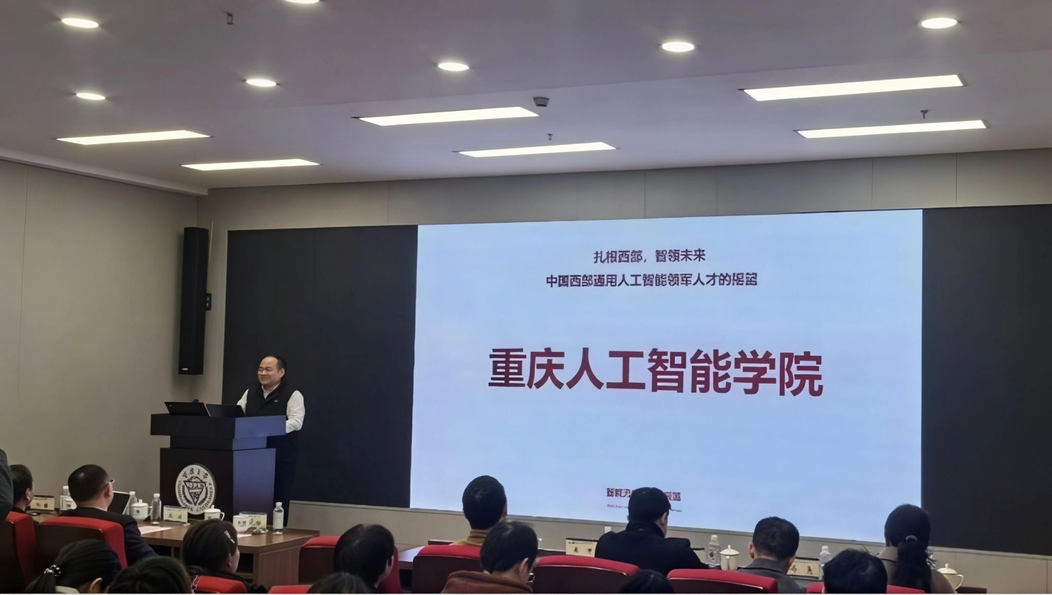 随后,重庆人工智能学院执行院长宋国杰研究员作主题宣讲。他介绍,重庆人工智能学院于2025年9月设立,由重庆市教育委员会举办,是服务国家人工智能战略和重庆“416”科技创新布局、“33618”现代制造业集群体系的重要载体。宋国杰从三个维度系统阐述了学院的办学特色: