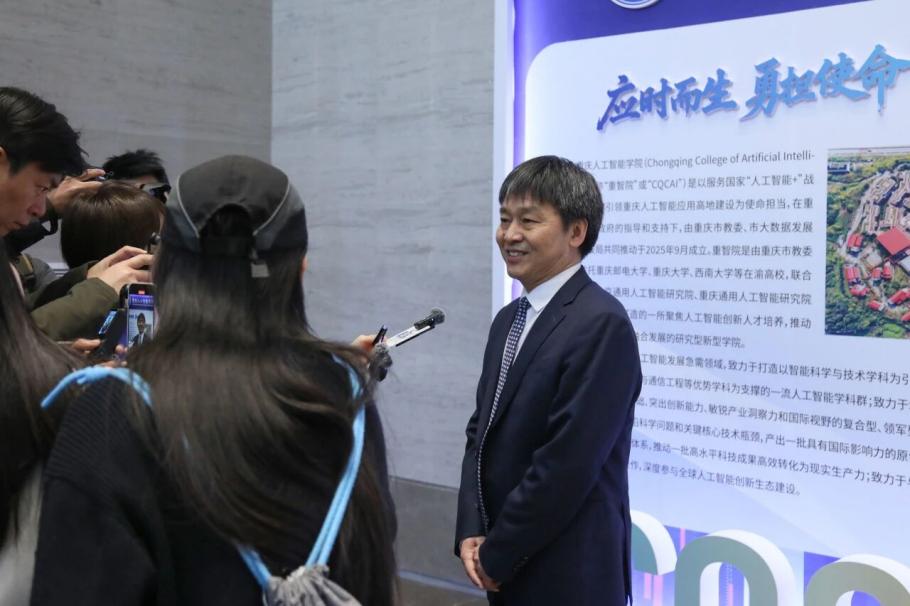 迎新现场,苏森在接受重庆日报、重庆电视台、中国教育电视台、华龙网等媒体采访时表示,学院首创“通识—通智—通用”贯通式培养体系,本科“渝通实验班”与硕博“渝通计划”同步推进,实现本硕博一体化育人。该培养体系不仅打破高校与产业、学科与学科之间的墙,还能实现“学业、产业、就业、创业”的无缝衔接,探索一种全新的、高效的AI人才培养模式。学院与华为、腾讯、长安、赛力斯等行业龙头建立深度合作,实行“学术名师+企业总师”的双导师制。首批新生入学后,将共享人工智能领域“101计划”等国家级优质教学资源,参与“需求—科研、企业—高校、项目—团队”三位一体的科研攻关,在真实产业场景中锤炼本领。